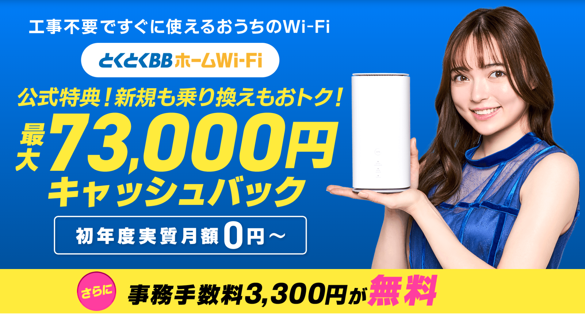 とくとくBBホームWi-Fiは、工事不要で始められる手軽さ、データ量無制限、5G対応、わかりやすい月額料金、キャッシュバック特典が魅力のホームルーターサービスです。